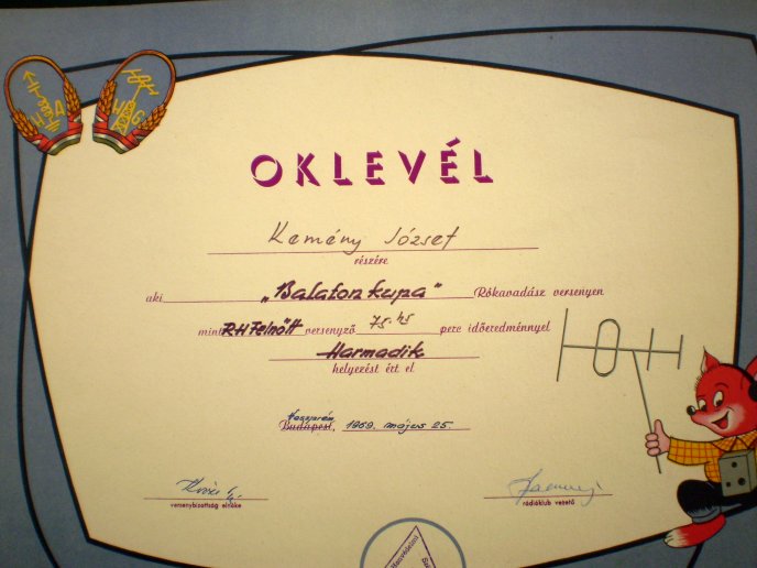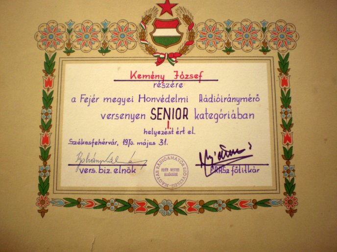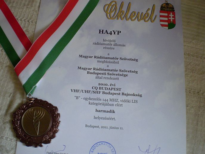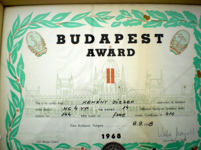 Amire nagyon büszke vagyok, hogy elnyertem a Magyar-várak-tájak Diplomát, a bronzot 1969-ben, az ezüst és arany fokozatot 1970-ben. Mindhárom diplomám a világon az első! (First VHF on World Nr:001)