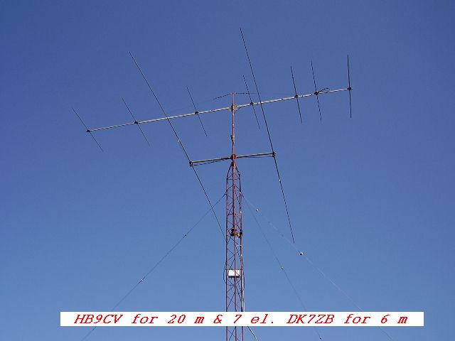 For HF bands lin. amp. with GU43b, for 6 m lin. amp. also with GU43b and 7 el. DK7ZB 13,5 m a.g.l.